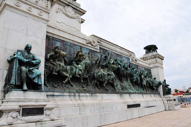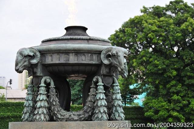 独立纪念碑底座有一幅大型青铜浮雕,顶端是青铜雕塑,碑前的青铜火炉里的圣火终年不熄。