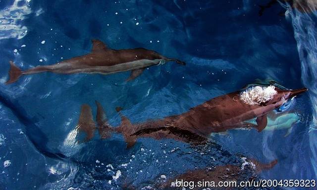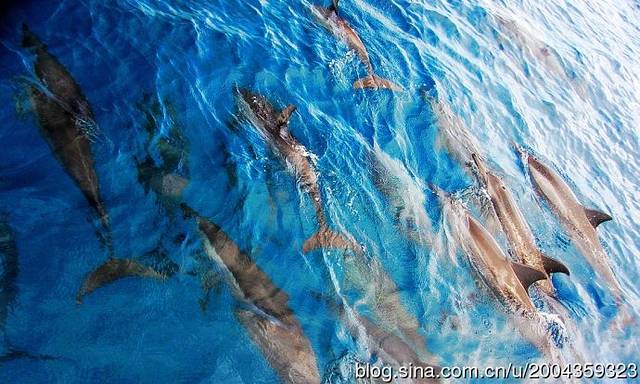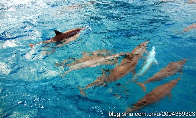当你乘座游艇来到海豚湾,就会发现很多长嘴海豚在这里聚集,在我们乘座的游艇周围就大约有数十多条海豚。它们时而跳跃,时而翻转,跟随游艇的速度嬉戏玩耍。 最后,它们在游艇前面尽兴的表演,船快它也快,船慢它也慢,不离不弃。真的不清楚这些可爱的海豚,为什么喜欢与游艇同行?还是以为人们在与它游戏?