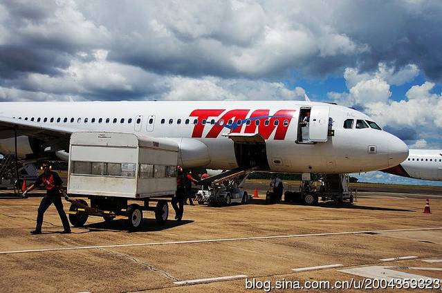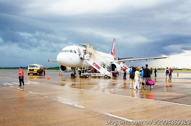 飞行了大约1小时左右到达伊瓜苏上空,只可惜因座位不靠窗,没能在高空中看到大瀑布。伊瓜苏的机场很小,就连行李车都是人工拖拉。