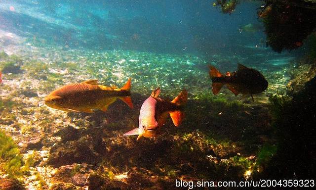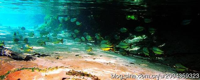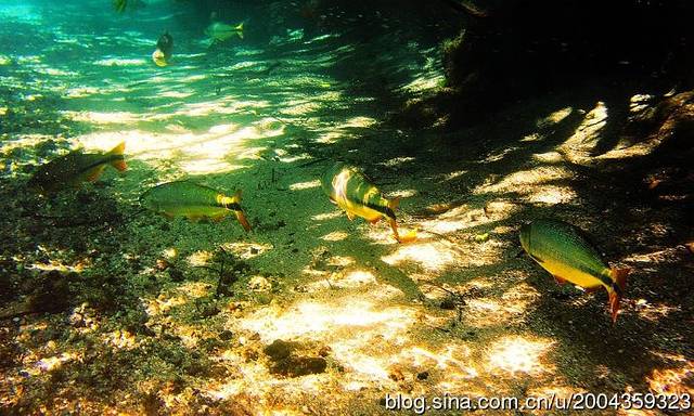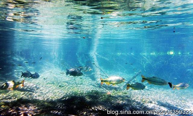 潜入水中后,一路上与众多的鱼儿为伴,一同遨游于清澈如水晶的水中,四周都是令人眼花缭乱的半水生植物,感觉人是在画中游。大大小小的鱼儿在身边穿梭,好像一同在树丛、白云之间游动,使人仿佛置身于仙境。