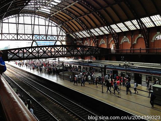 进入LUZ车站后,看圆拱形屋顶下的站台,近似室外般明亮,熙熙攘攘的乘车人川流不息。