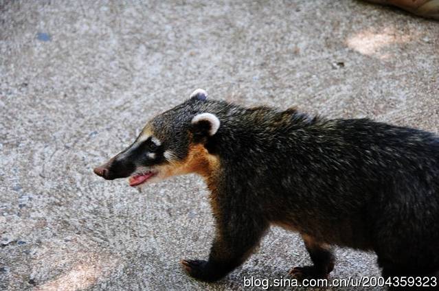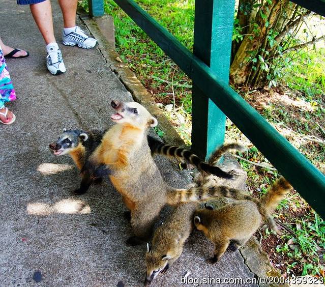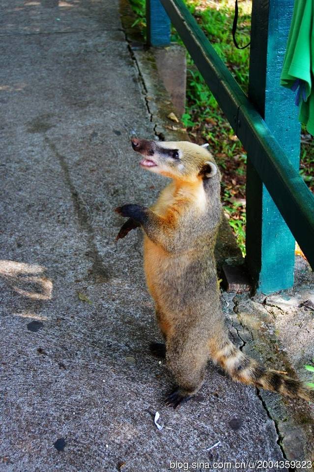 当时,真的不知道它们叫做什么。后来,几经周折查到这是长鼻浣熊(Mountain coati) 盛产于中南美洲,它弹跳力惊人,是一种非常像浣熊的哺乳动物。它们长长的口鼻部来挖掘昆虫、蜘蛛、蚯蚓和蜗牛,但也吃鸟、蜥蜴、蛋类和水果。非常爱清洁,经常用它们牙齿、脚和手互相梳理毛发。如果训化好,可当做不错的宠物。