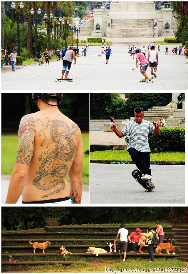 在通往纪念碑的斜坡路上,许多滑板爱好者,男女老幼都欣然自乐的玩着。路旁的草场和台阶上,溜狗的人们和欢快的狗儿,构成一幅欢乐、祥和、休闲的画面。