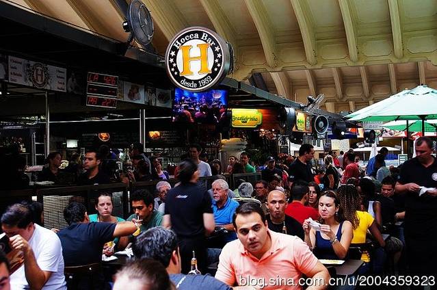 二楼全部是酒店和酒巴,各家都排着长队,人满为患,我们找到事先选好的一家名店进餐。吃地道的巴西汉堡,肉比面多,这叫肉夹馍更贴切吧!香蕉巧克力馅饼、经典汉堡、鱼肉三明治和另一种鱼肉馅饼,还有当地扎啤是必须的。大家一致认为他家食品色彩鲜艳,很有食欲,可称作顶级汉堡。