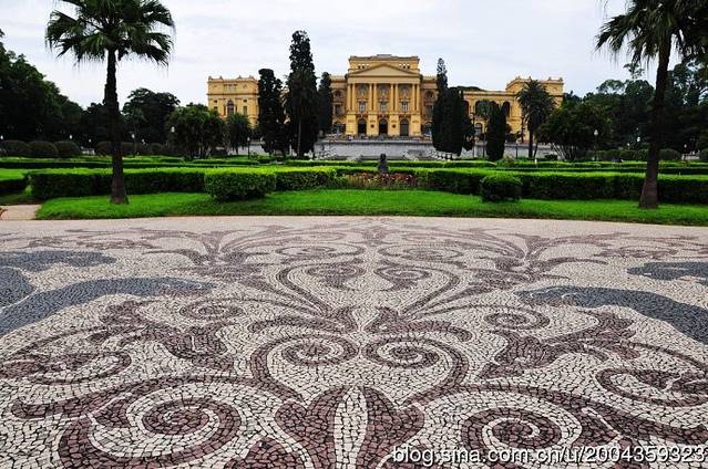 站在花园中央漂亮图案的地面上,眺望博物馆大楼,在树木的衬托下显得高贵典雅。