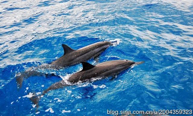 一对情侣海豚,形影不离,这不肚皮相贴,耳鬓厮磨。