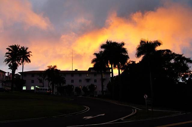 因大家都在谈论着晚餐准备吃的巴西烤肉,没心情闲逛,在长凳上休息。一会只觉天色变暗,好像要下雨,抓紧往回返。就这样当快走到门口时,还是下起了大雨,有几个没用雨具的人,还是浇了个落汤鸡。