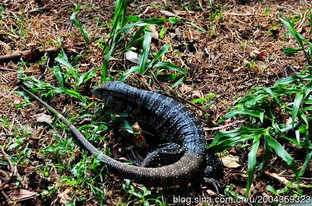 当时,我们其中有四人乘游艇去游河,在下面观看瀑布。因我们水下相机没在身边,这是最后的一艘船,时间关系只有放弃。沿着曲折蜿蜒的大峡谷旁山路前行,路旁茂密的树林,不时看到巨型蜥蜴,你看它吐着红红的舌头,慢慢的爬行。
