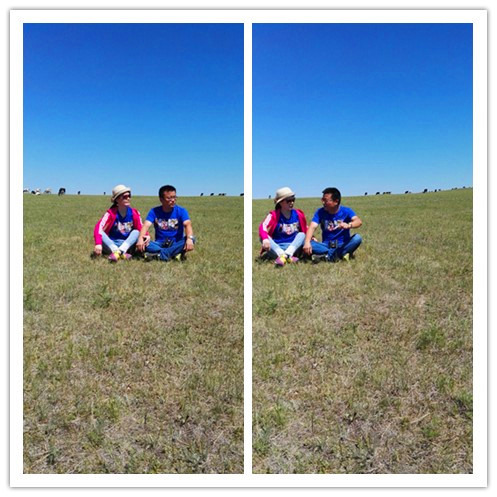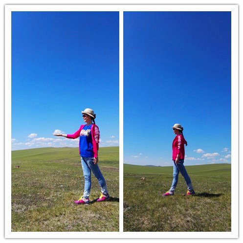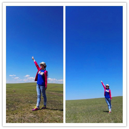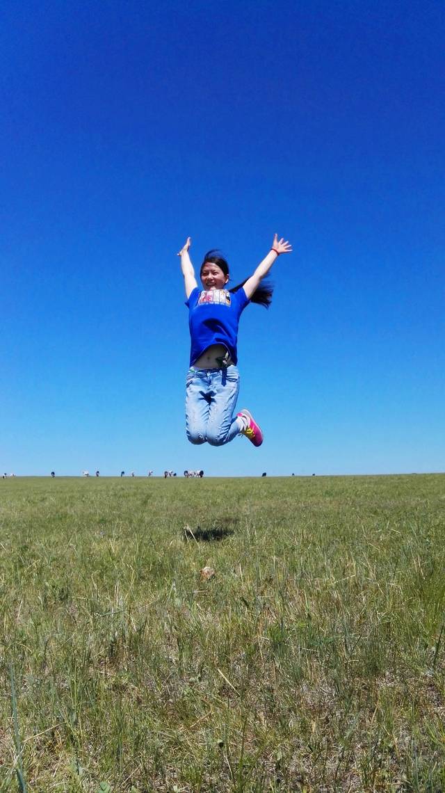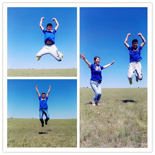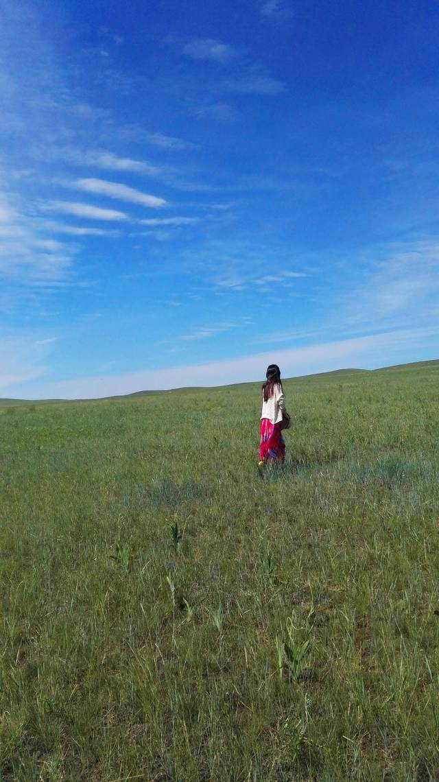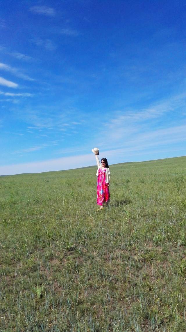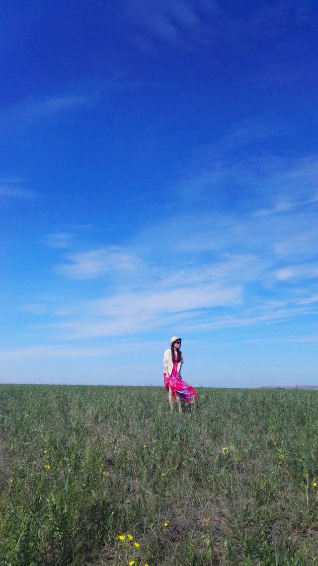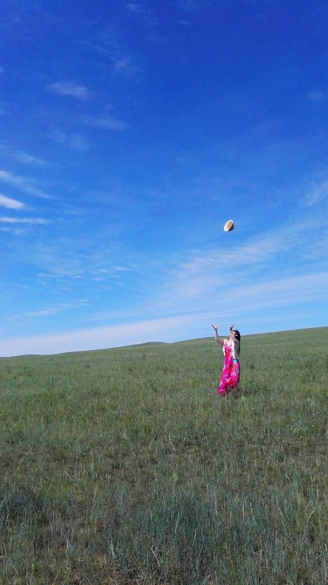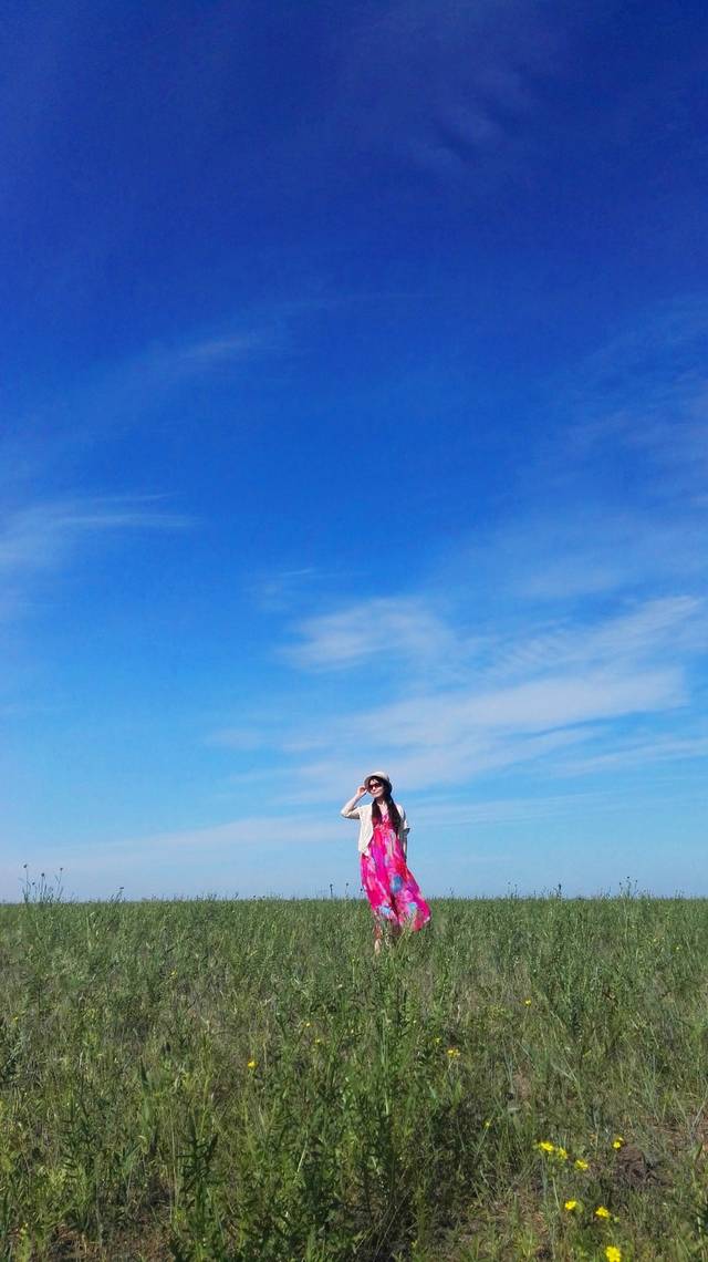 我们在草原上奔跑,跳跃,呼喊,尽情地撒欢。原谅我没有单反,只有手机,不能将草原的美景完美展现出来,就算再强大的单反,也没法360度的记录下草原的辽阔呵,那么,就用眼睛这个镜头,把她们一一刻录在心里。车子在辽阔的草原公路上行驶,没有红绿灯,没有限速,从车窗里往外望去,蓝天,白云,绿草,牛羊满山坡,最美的景色在路上。我的心太小,装不下草原的辽阔,我的笔太瘦,写不出草原的美。