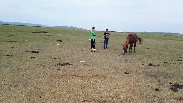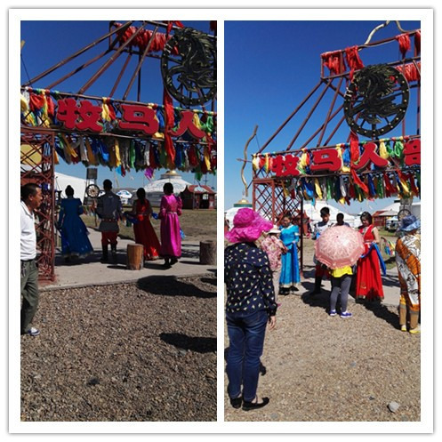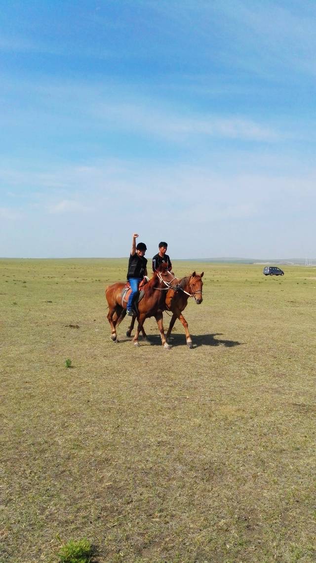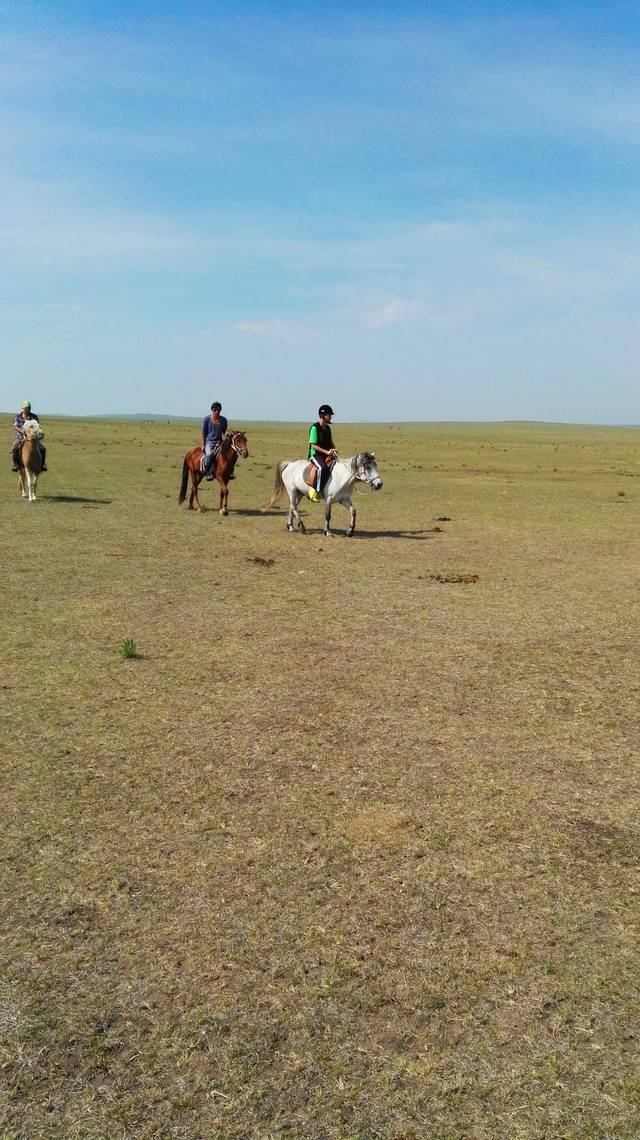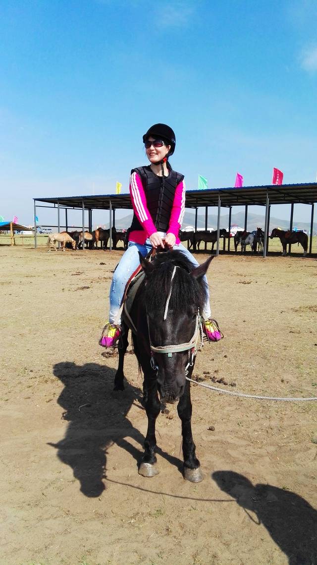 这里到处是骑马的马场,不骑马,怎算来过草原?走,骑马去喽!戴上头盔,穿上马甲,威风凛凛,英姿飒爽的架势就出来了。坐上马背,登好马镫,抓好缰绳,走起!当马走起来的时候,可不是那么稳了,马背一动一晃,我感觉我就要掉下来了,不时惊呼,而牵马的人却喝住我,不许叫,防止马受惊了,会乱跑乱跳,我更紧张了,怕自己控制不住会惊叫,那样会发生怎样的后果,我不敢想象,我反悔了,走了不到二十米,执意要回去,牵马的人说,人家六七十岁的老太都能骑,他肯定是瞧不起我了,老丢人了,好失败的感觉。再一望,我们的两个男人已骑着马消失在我的视线里。