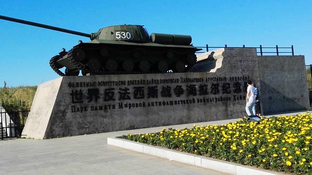 这是建立在原侵华日军海拉尔要塞遗址上的一个战争纪念园,我们没买门票,在免费的园子里玩,这里有许多模仿战争场景的雕塑,还有真坦克,我家一老一小两个男人,平时就是各种什么飞机坦克狙击步枪99式歼11式没完没了的讨论,这下见到真坦克,可乐坏了,坐上去,钻里面去,这里摸摸那里看看,最后还是我催他们,才劝走了。