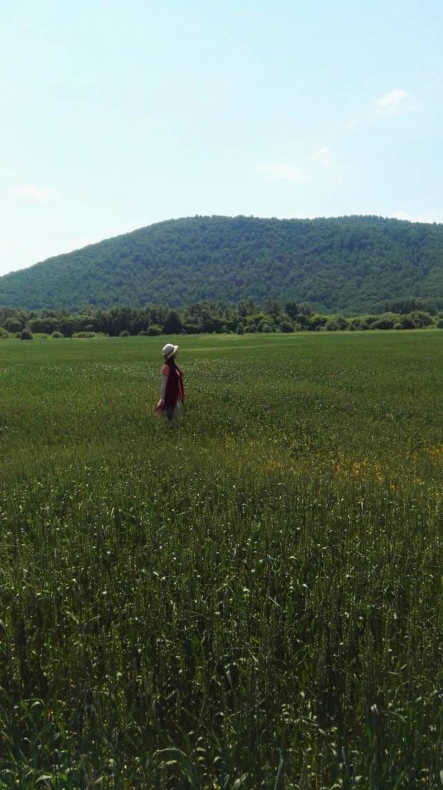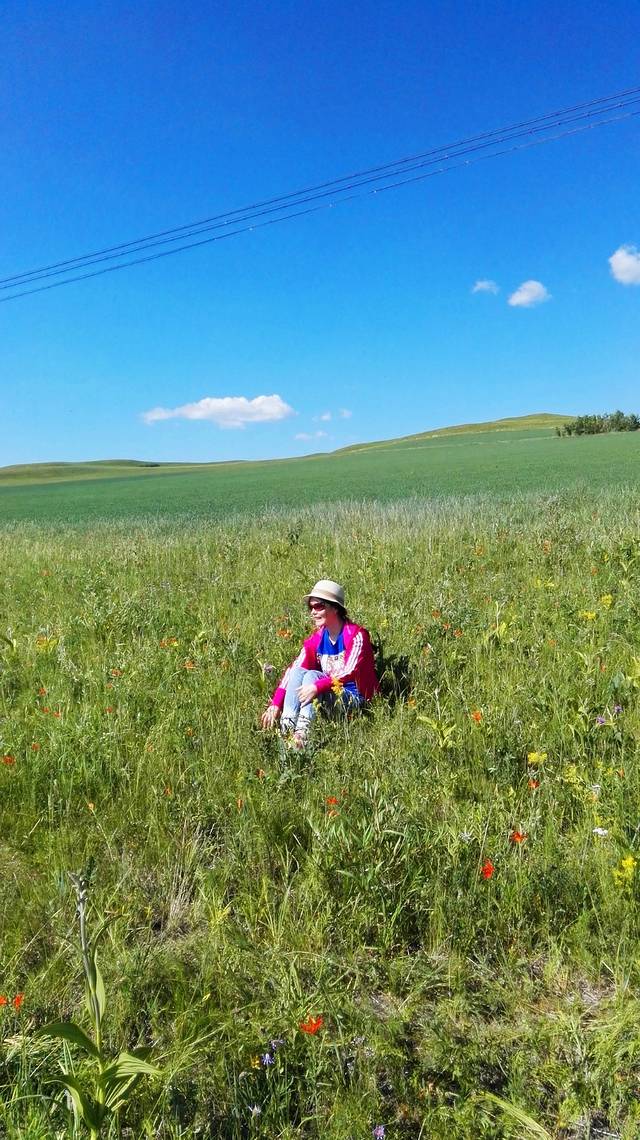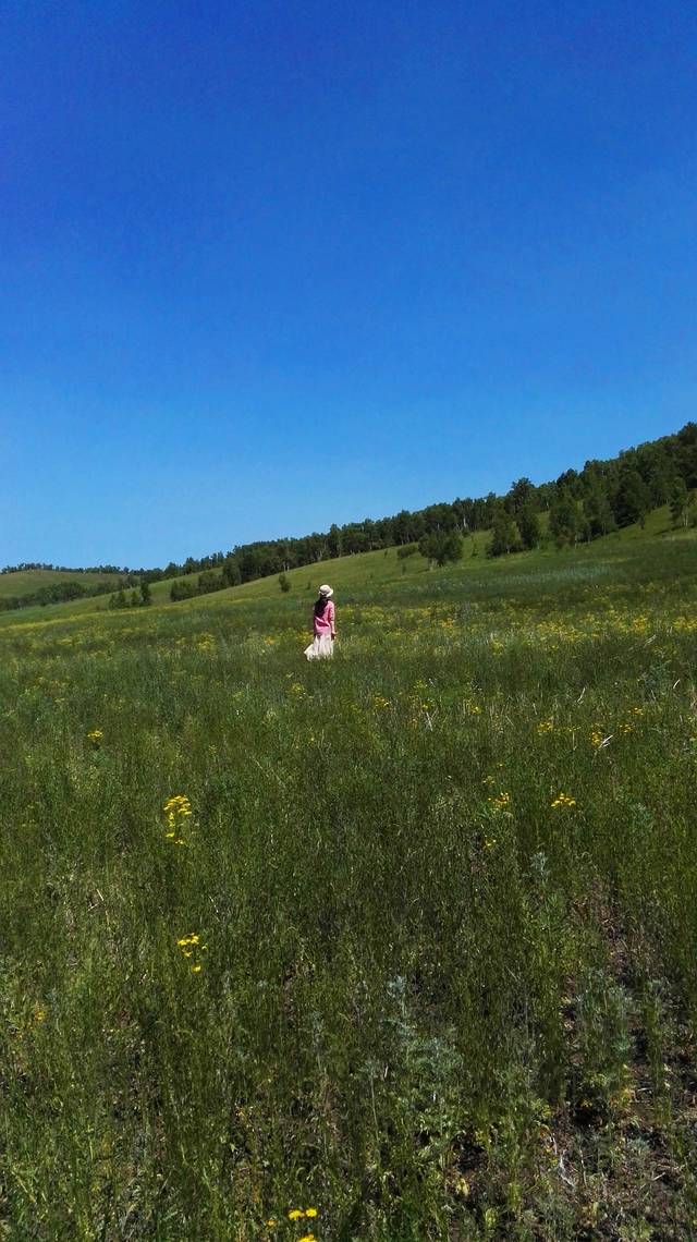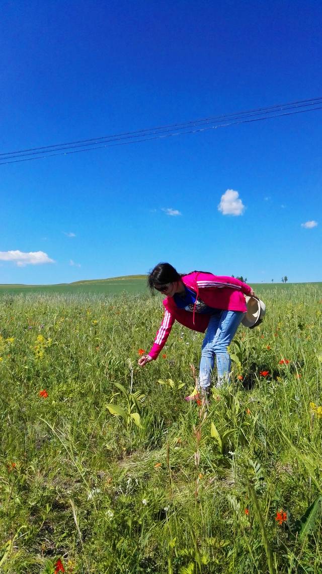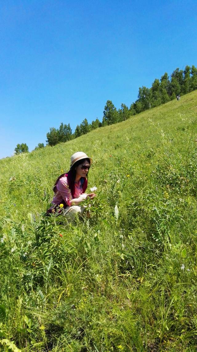 不知从何时起,变得敬畏自然,敬重生命,哪怕是一朵小花,一棵小草,都不忍伤及。山坡上到处盛开着各种野花,我只认得芍药,好想摘一束野花高高地举向天空,定格下美好,这是我一直在脑海中勾勒的画面。但是,怎能因为我的到来而终止她们的自由生长?最后,一朵也没摘,只是用手轻轻地触摸她们,和她们对话:小小的花儿啊,长在这样的蓝天下,原野里,多么幸运,多么美妙!