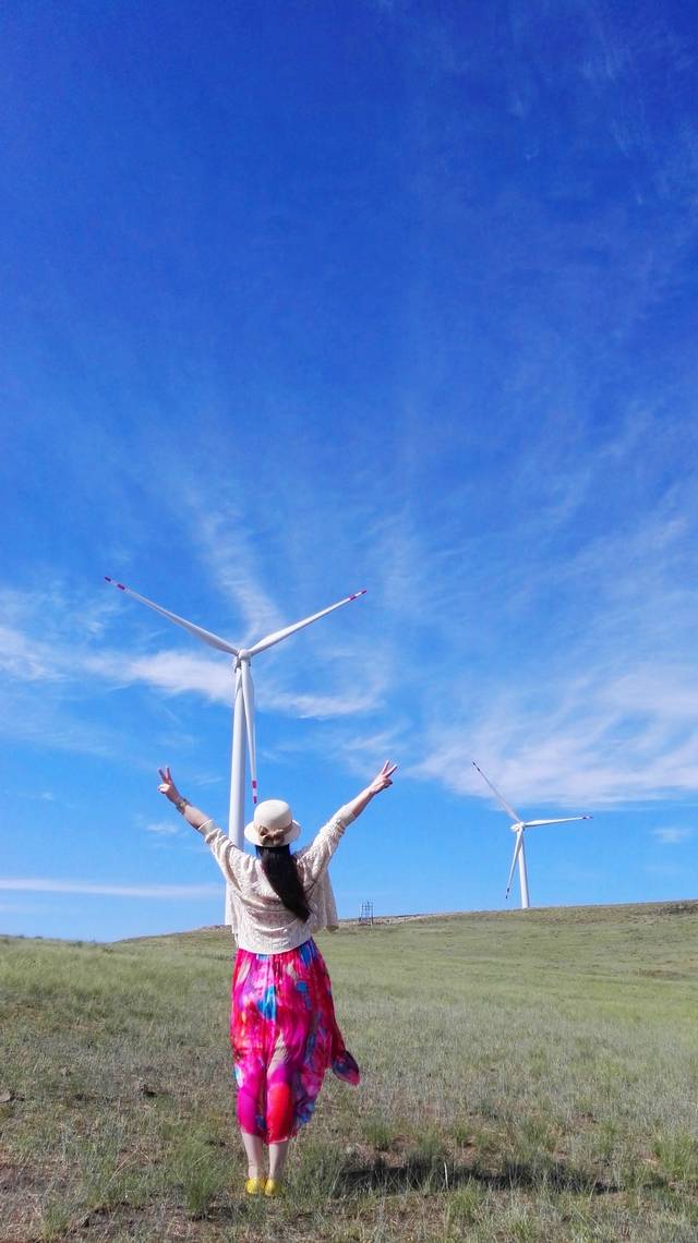 大风车呀直溜溜地转,这里的风景真好看。。。风车,郁金香,是我脑海中常出现的画面,那么,风车,草原,又是怎样的一幅画面呢,我好期待,一路上跟司机说,一定要带我们去看风车哦。终于,期待的风车终于出现了。