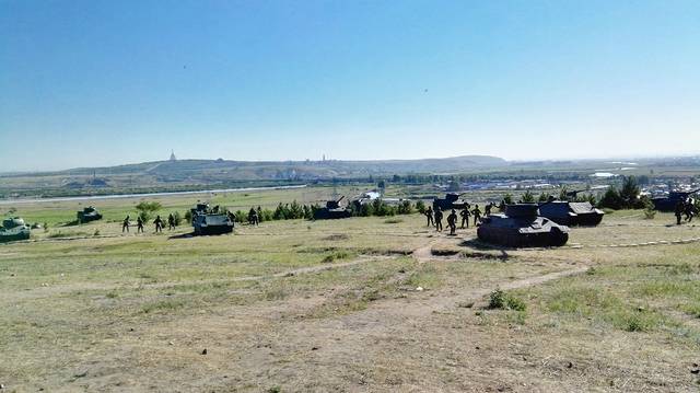模仿战争场景的模型,看到远处山上的慈积金刚塔了吗?绕了一圈,还能看到。