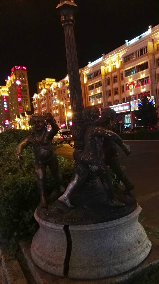夜晚的满洲里街,灯火通明。