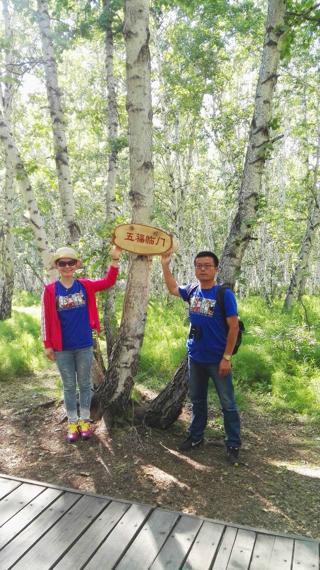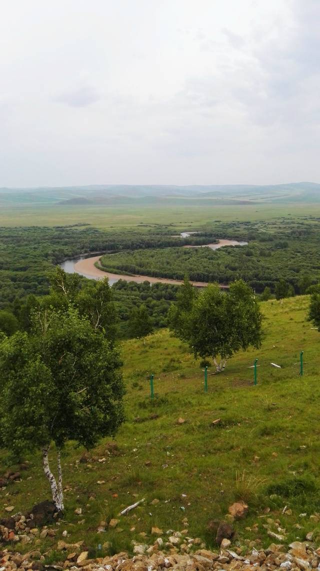 再一次来到额尔古纳市,看到大街上很有特色的中国结的路灯。湿地公园门票多少钱没打听,因为没打算进去,又一次留下一张到此一游的照片。司机带着我们去了旁边的一个山头,他说这个山头就是我在淘宝上包车的店主包下来的,正在开发中,门票80元,他说不知道门岗有没有人,我说要是收费,就给店主打个电话,他家的客人来了,哪能收费呢?经过门岗的时候,只有一条狗栓在那里,吭都没吭一声,我们就这样上山了,哇哈哈。到了山上,根河湿地尽收眼底。