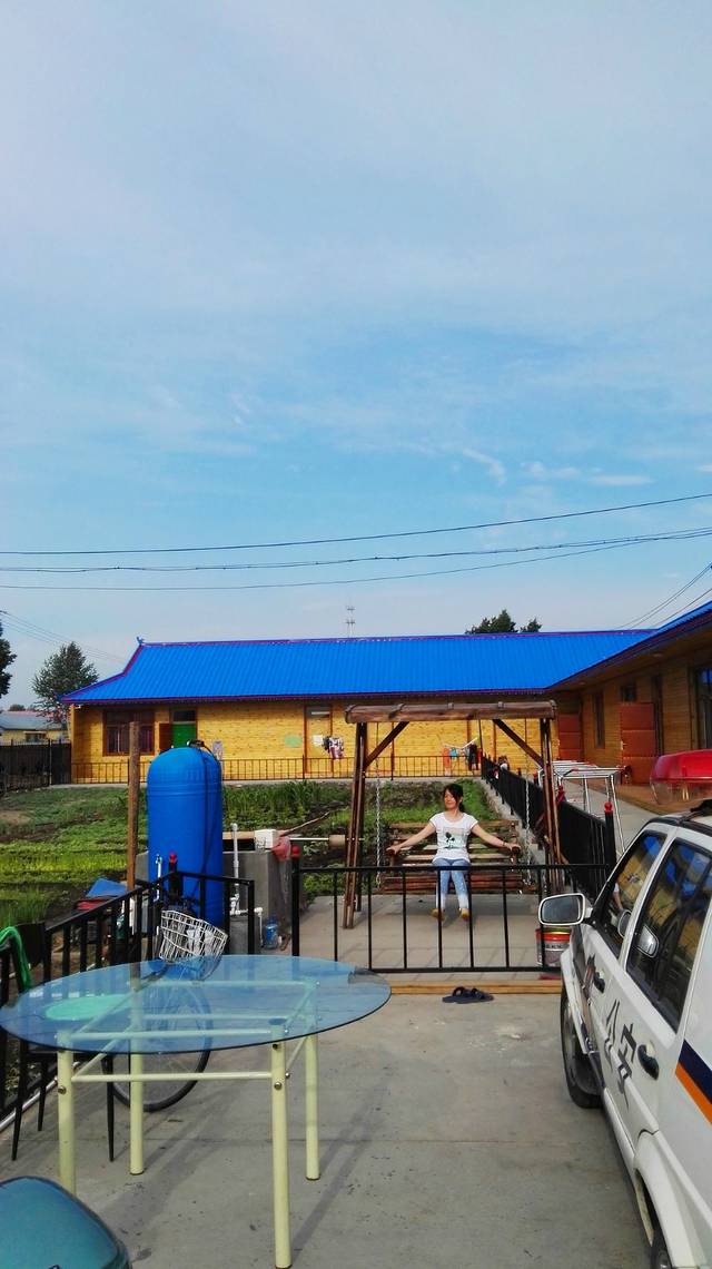 都说黑山头是看日落的最佳地点,站在山头上,看彩霞满天,太阳从湿地草原上落下,美不胜收。每到傍晚,山头上就站满了许多的摄影爱好者,架起长枪长炮,守着太阳下山的那一刻。这一天,天阴了,我们没有看到日落,是此行的唯一缺憾,好在我们在临江那里看到了日落。黑山头的住处是我自己找的,前两天都是司机帮定的房间,200标间,不含早,可是到了这里的宾馆一问,要280,还不含早,于是,我就自己在小镇上找,终于找到这家,200元,含早,真好耶!这家房间很干净,女主人是位小学老师,会做烙饼,小菜,可好吃了。最喜欢的是她家的院子,有一块菜地,一个秋千,荡着秋千,种种小菜,去牧民家唠唠嗑,慢悠悠的,没有各种复杂,匆匆的节奏,生活如此简单,好想这个就是我的家,好想过这样的生活,好想,好想,好想。