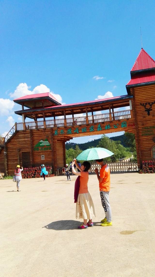 莫尔道嘎是蒙语“骏马出征”的意思,当年成吉思汗来到这里,志愿统一蒙古,一声大吼:莫尔道嘎!此处因此得名。 莫尔道嘎地处大兴安岭腹地,是中国最大的森林公园,景区进80公里,出80公里,门票也很贵,160元,我们没有进去,只是在门口拍了照,车子在林间小路上开着,一路都是森林,不花钱也能看到大兴安岭的风景。“大兴安岭,雪花飘舞,海南岛,百花盛开”,再次想起一年级课本上的这篇课文,而这两个地方,我都来过,多么幸福的事!