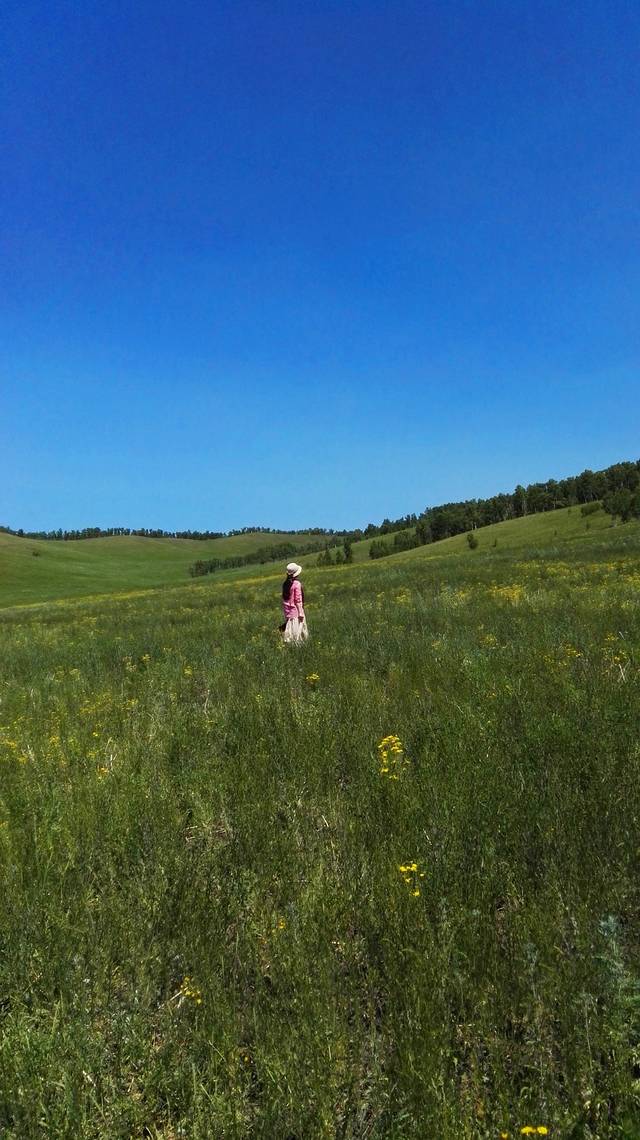 或许是久被城市的钢筋水泥禁锢,天际总被高高的楼房屏蔽,好想逃到一个地方,那里无遮无挡,无边无际,可以在广袤的大地上自由奔跑,让心从牢笼中释放。看过中国南端的海,想领略一下北国风光,呼伦贝尔,这个好听的名字,中国最好的草原,走近我的视线。每一次的旅行,都需要好大的勇气,比如时间,精力,一笔不小的花费等等,最大的困难是工作,出发前的安排,回来后的衔接,千头万绪,一次次地决定,一次次的否决,理想与现实就这么矛盾着纠结着,可是每次看到别人写的游记,那一望无际的草原无时无刻不在诱惑着我,那颗躁动的心再也按捺不住,于是,所有的所有,都放下,放下是一种境界。中国这么大,我要去看看。