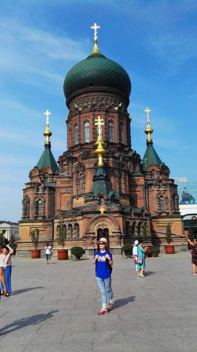 一路走走看看,来到了圣索菲亚教堂。这是一座俄国人建的教堂,建于1907年,当年俄国政府为了安抚身处异国他乡士兵的心灵,修建了这座教堂,让他们在这里做礼拜,如今,这座教堂已经不再做礼拜用了,而是成了一个展览馆,成了哈尔滨的标志性建筑,来到哈尔滨的游客必定要来此参观,百年教堂,历经风雨,见证了中国惨遭列强侵略的屈辱历史。