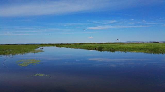 “蓝蓝的天空,清清的湖水,奔驰的骏马,洁白的羊群,我爱你我的家我的家我的天堂...”这首歌唱的就是这里吧,当我们来到这里的时候,瞬间被她的纯洁融化了,天空是是蓝蓝的天,洁白的云,水中也有一个蓝蓝的天,洁白的云朵,还有那青青河边草,飞来飞去的小鸟,真是海鸥飞处彩云飞呀,我们甚至都怀疑眼前的景色是否是真的,比画还美的画面,我只能这么形容了。