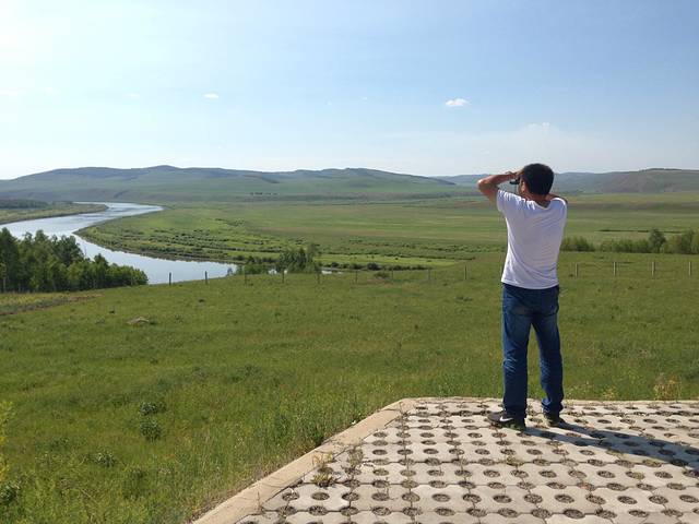 室韦,蒙古族部落的发源地,位于额尔古纳河旁,额尔古纳河又称界河,一河跨两界,这边是中国,河对岸就是俄罗斯,站在河边,可以清楚地看到对岸的俄罗斯村庄,还有小路上行驶的车辆,河那边有几个俄罗斯人在钓鱼。我的哈大马用望远镜深情地凝望,那曾经属于我们的国土,在中国最懦弱的清政府手中丢失,被俄国霸占了150多万平方公里。出来借的,总要还的,总有一天,那山,那河,必须还给中国!车子在长长的边境小路上行驶,哈大马和包车司机一直在呐喊:还我河山!还我河山!