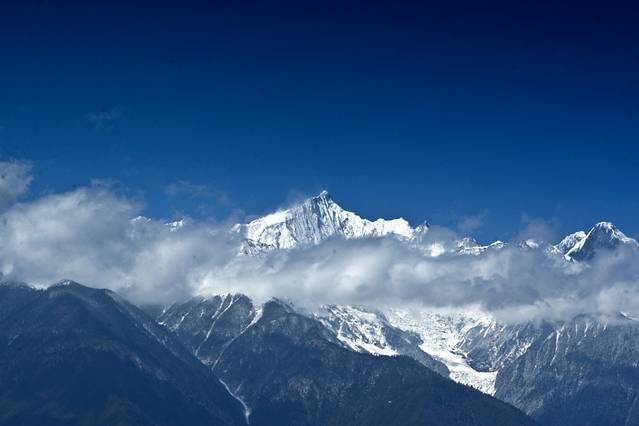 梅里雪山。那里平均海拔在6000米以上的就有13座山峰,称为“太子十三峰”,主峰卡瓦格博峰海拔高达6740米,是云南的第一高峰。梅里不允许攀登,但远观已经很壮观,尤其是日照金山,壮美之极。去梅里途中,还会经过拉市海、虎跳峡、香格里拉、白马雪山、明永冰川等景点