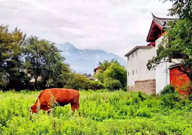 大研古城保留着最淳朴的气息,云海缭绕中的古村落、登顶俯瞰下的古镇,还有不得不去的万古楼,一起组成了一幅古香古色的静态古城图,而低头进食的小黄牛则为古城添了一丝动的韵味。