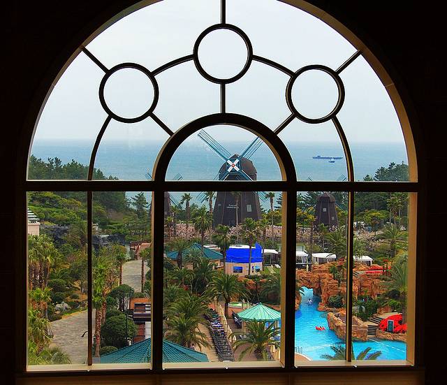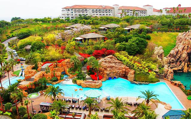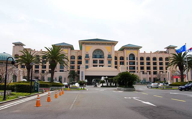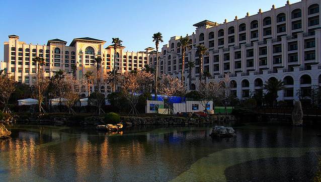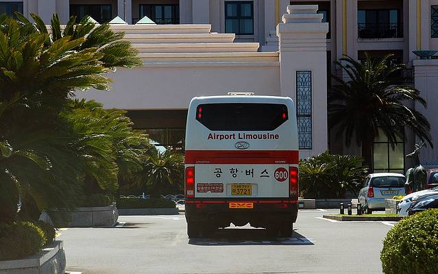 乐天酒店在济州岛的南端中文旅游区内,距离机场大约40分钟的车程,乘座出租车需30000韩元。建议乘座600路大巴,仅用450韩元/每人。600路大巴就在机场出口的右手边,非常好找,每15分钟一班,直接送到酒店的门口(也到其它酒店门前)。酒店没有免费接机服务,但门前总是站立一位接待员,见面就给你鞠躬,表示欢迎并为你提供服务,让你心里也很舒服。