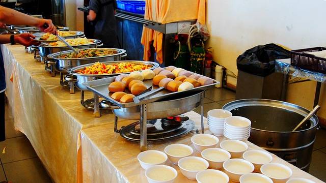 早晨,大家洗漱完毕,到二楼餐厅自助早餐,大米粥、三种馒头、几种炒菜,很不错。