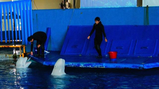 最后,观看给白鲸喂食,叫做与白鲸早餐约会。