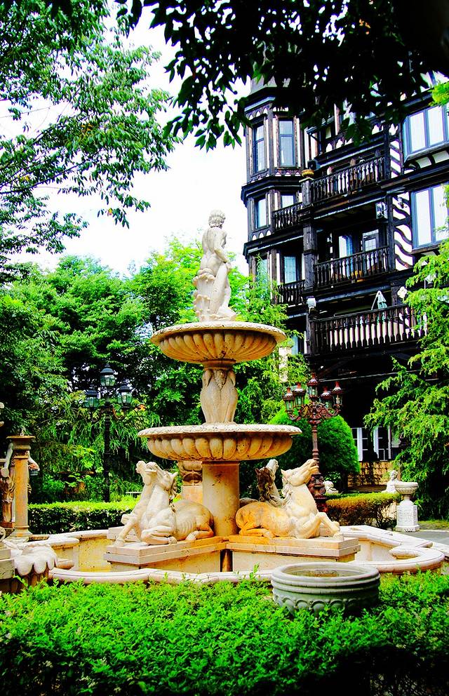 经过门童的核对,带领我们拾阶而上进入庄园,首先映入眼帘的是满院子的石雕,如同误入博物馆。