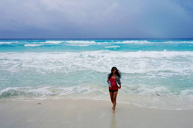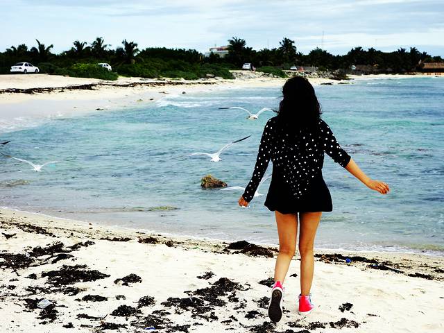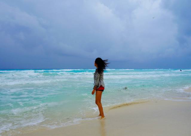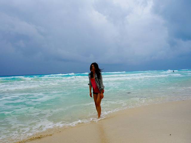 一路从遭遇暴雪的纽约到达温暖如夏天的墨西哥,衣服都没有准备,一路穿着借着别人的男生T恤