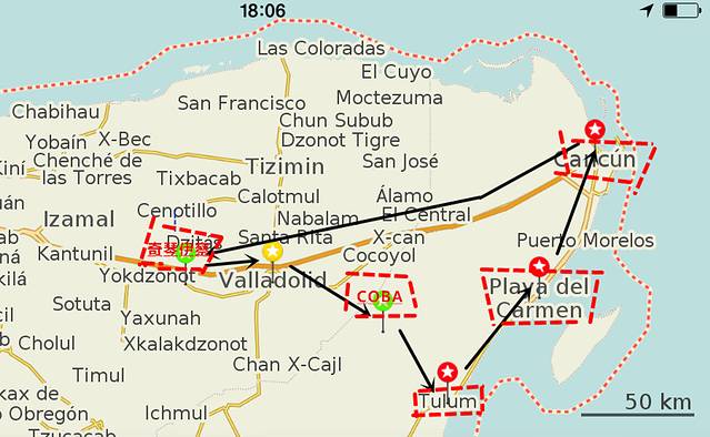 时间非常的就紧,之前还一直琢磨巴士时刻表看到底怎么走怎么游才比较顺畅,原计划是到了机场直接从机场坐巴士前往奇琴伊察,还把第一天晚上在奇琴伊察的房给订了,也没办法改,打电话过去也是语言不通,两边都是英语一般的人用电话沟通可不是那么顺畅。跑下去,想找个会英语的墨西哥人帮我打电话改订房,可惜交流也不顺畅。
