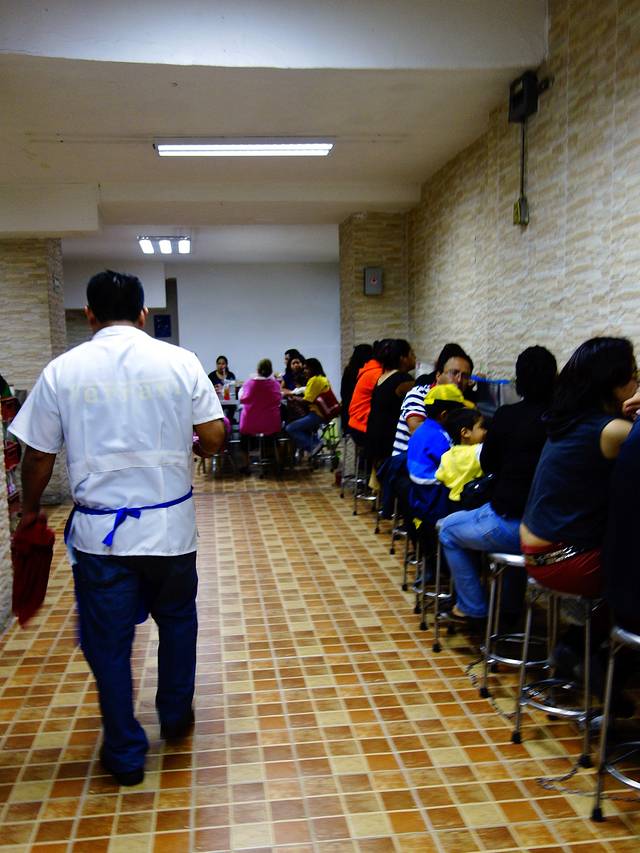 从宪法广场西侧的AV Madero往里走一点,就看到人头攒动的Taco de Canasta“Los Especiales”。 这家店有着墨西哥城最便宜的Taco店的称号,5比索一个的Taco是很便宜,排队的人也很多,也就因为人多,里面就看到一大桶一大桶的,所以TACO都是早已经做好的不是现做的那种。