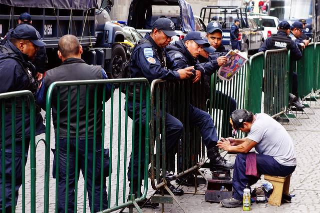 墨西哥城当地特色的擦鞋摊,比国内那种拿着小椅子的要高大上很多有没有,坐在高处会感觉被伺候的好好啊。