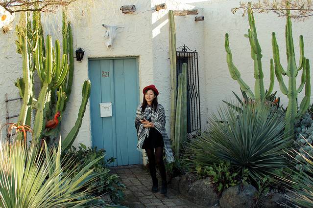 一开始还以为是旅馆还想找房来着。。。也不知道这里是什么地方。后面有个美国大妈出房门摆弄她的仙人掌,来问我干嘛要不要帮助,她告诉我们这一片都是私人住宅,所以这里不能待,弄不好会有人报警。