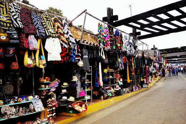 小街两旁的房屋茅草盖顶,店铺林立,摆满银饰等手工艺品各式小吃叫卖声不绝于耳,墨西哥风情十足。跟国内景区购物一条街一个德行。