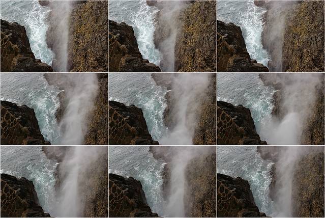 之前我都觉得很无聊,而来到LA BUFADORA,一看到海底喷泉,突然就兴奋了,这峡谷由远而近成楔子形,只见海水在嶙峋的礁石间激荡,每隔几分钟便呼啸着喷射而起,溅起满天浪花和水雾,非常壮观。