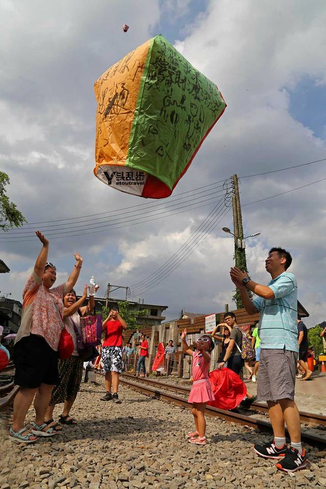 平溪线小火车途径[十分],一定要下车看一看喔!写祝福,放天灯。