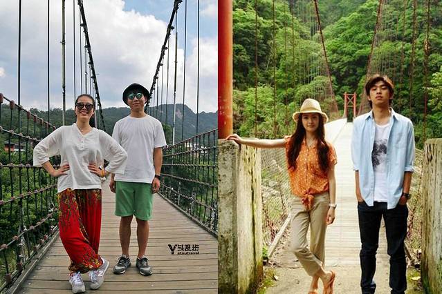 静安吊桥下,基隆河静静流淌,在桥上学电视剧里程又青和大仁哥的经典姿势。