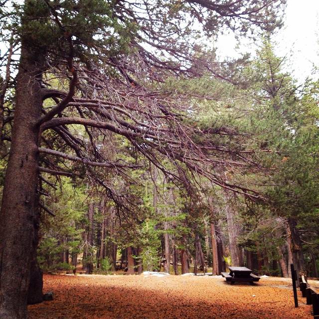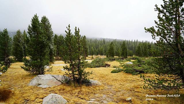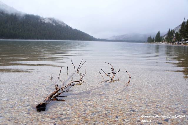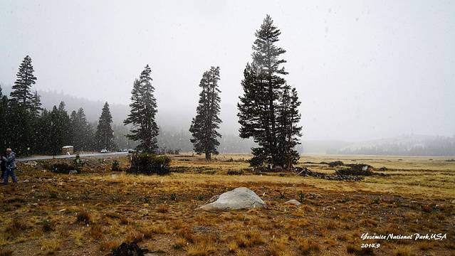 从玛莫斯湖出来一路进入优胜美地这一段,从晴空万里到突降大雪,恶劣的气候把原本的徒步计划都打乱了,只能一路前往帐篷营地。中断了所有通讯设备,第一次在野外过夜。这是美西路上条件最恶劣的一晚