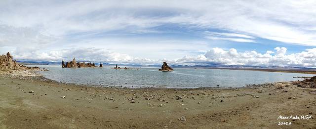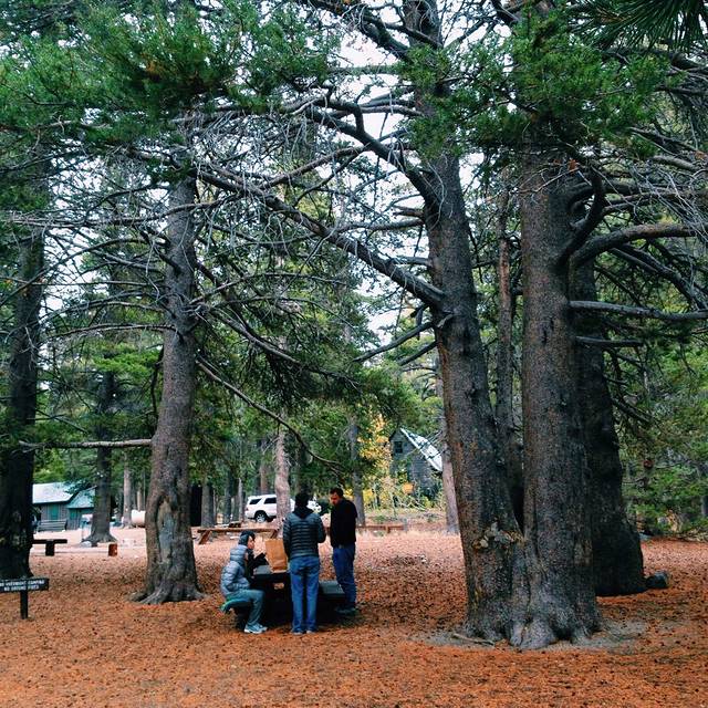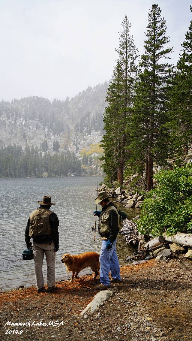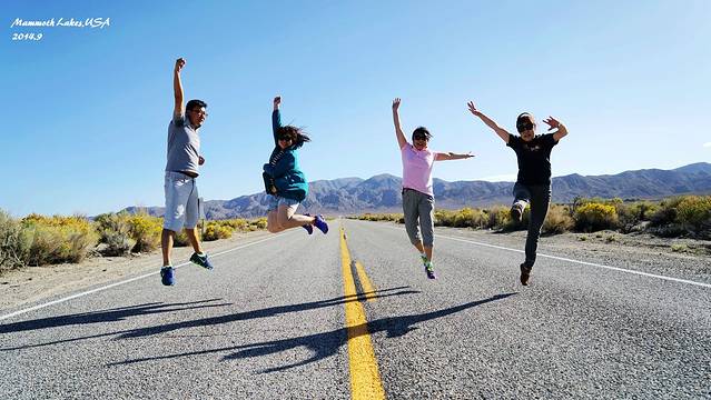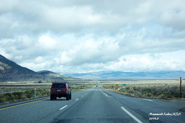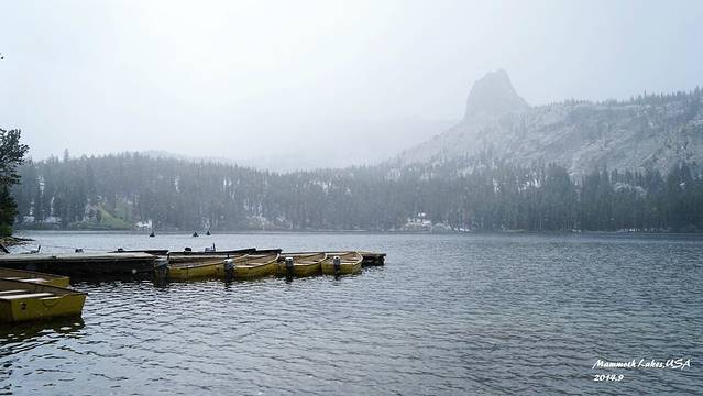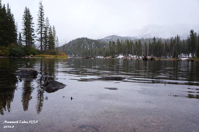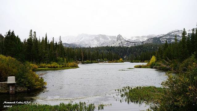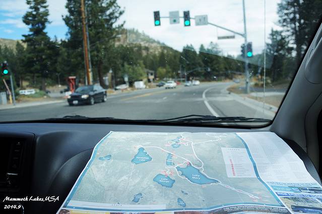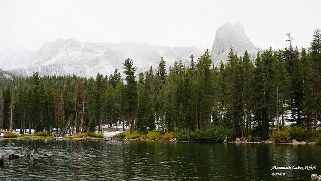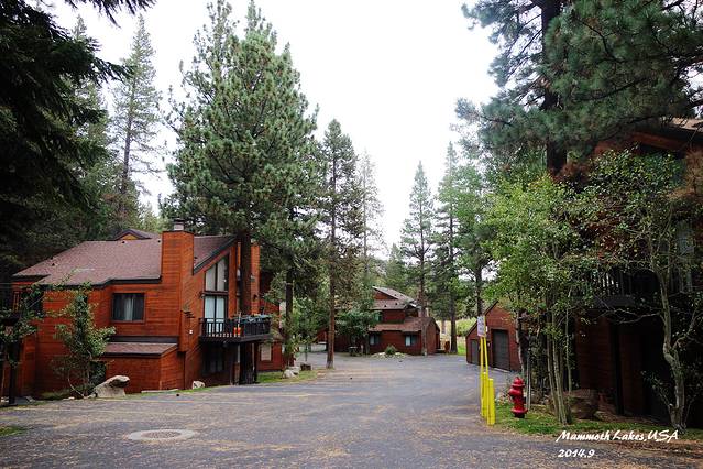 进入马莫斯湖区,海拔一下上升了很多,气温也骤然下降。从早晨40度的Vegas到10度的马莫斯湖,一天时间就从酷暑走到了深秋