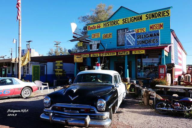 见证了美国人西部大开发和辉煌淘金史的66号公路上,有个名叫Seligman的小镇。它简直是展现66号公路文化最极致的地方,复古的陈列,随处可见的老爷车,呼啸而过的哈雷骑士。总觉得66号公路的LOGO有一种魔力,会吸引你迫不及待的去探索那些年那些人的美国梦。