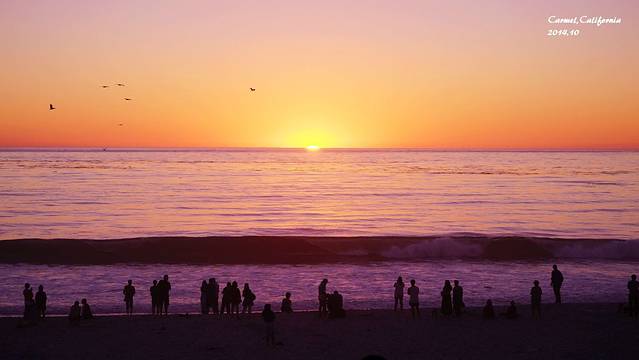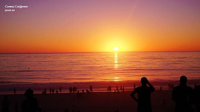 卡梅尔的落日就这么毫无预兆的出现在了下一个路口,橙色的天空,粉红色的海面,白色的海滩,飞翔的海鸥,海面上有跳跃的海豚。真的是此生见过最美的海上落日,没有之一。