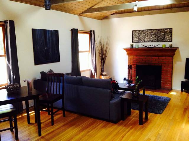 住的木质的小condo简直就是我的梦想的小屋。太喜欢这种里外全是木质的感觉,有壁炉,有可爱的沙发,全家人可以坐在一起聊天吃饭。太理想的生活了。