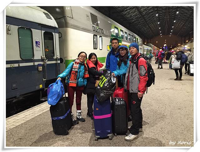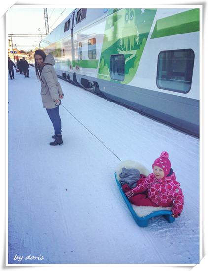 于是大家继续摆好pose开始等....直到传说中高大上的芬兰列车进入我的镜头;直到我们的双层车厢进入我的镜头,“咔嚓”,定格!