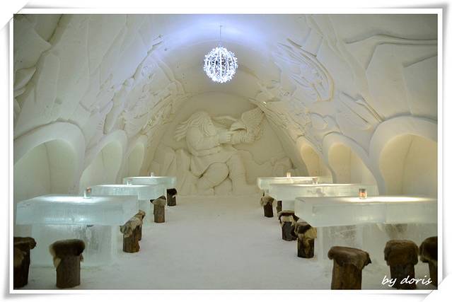 最先进入的这个餐厅让我一阵惊艳,该怎么形容呢?整一个晶莹剔透的世界(虽然与后来的基律纳ICE Hotel相比,这里就显得小儿科,但是这第一观感上的震撼却已无法取代).