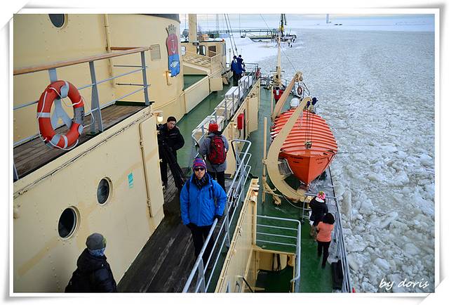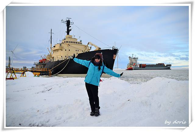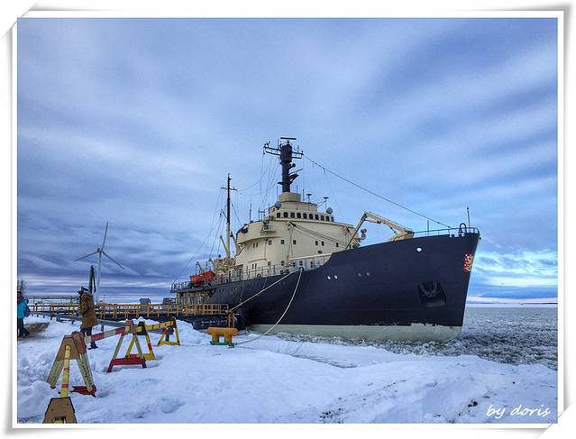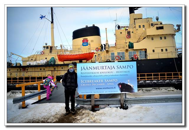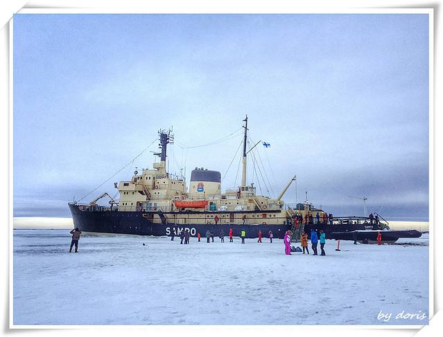 Sampo号破冰船是世界上唯一一艘可观光的破冰船,位于芬兰凯米港口,在波士尼亚湾的右上端,建于1960年,在用于破冰开辟冰冻海面二十七年之后,因船身宽度已无法适应更大型轮船的通航需要在使用年限未届满之前光荣退役。凯米市的某一任市长觉得就这样弃掉这艘船太过可惜,便将退役后的Sampo号从中央政府手中接过来,改为第一艘航行在芬兰、瑞典之间极地海域的观光破冰船。这一改,就让Sampo号成为开启世人了解、体验最真实破冰船作业的机会,破冰船身长75米,重3540吨,乘客量可达150人,每年十二月至四月的冬季期间载着游客出航,至今载客已有四十多年历史(艾玛,算起来这艘船跟我爹一样高龄了 )。