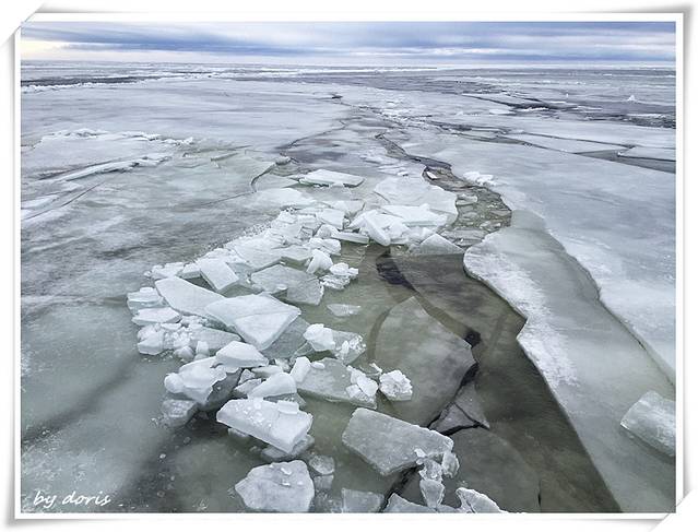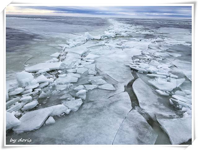 好壮观的“冰海”,破冰船就靠着自身的重力用船头的力量将坚硬的冰面碾开前进